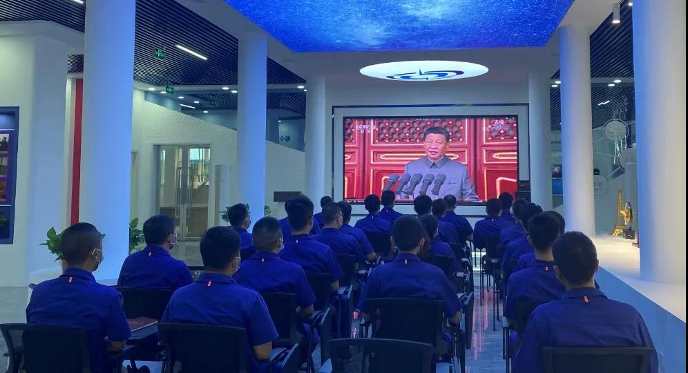 集團公司總經(jīng)理、黨組副書記劉大山,黨組副書記周艦,黨組成員、總會計師張華,紀(jì)檢監(jiān)察組組長、黨組成員陳學(xué)釧,黨組成員、副總經(jīng)理鄒文超,黨組成員、副總經(jīng)理植玉林帶領(lǐng)總部全體職工觀看慶祝大會,各單位組織機關(guān)干部、科研人員、車間工人等通過集中收看、電視、電腦、手機網(wǎng)絡(luò)等方式觀看慶祝大會。